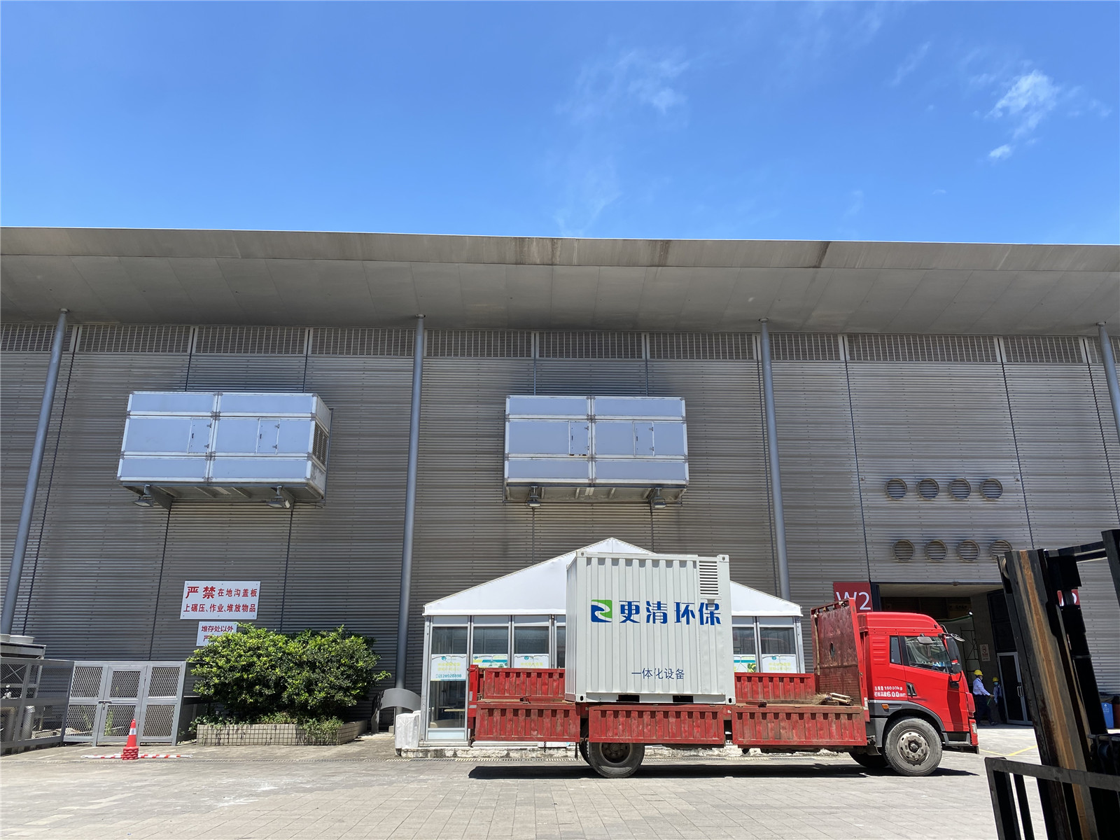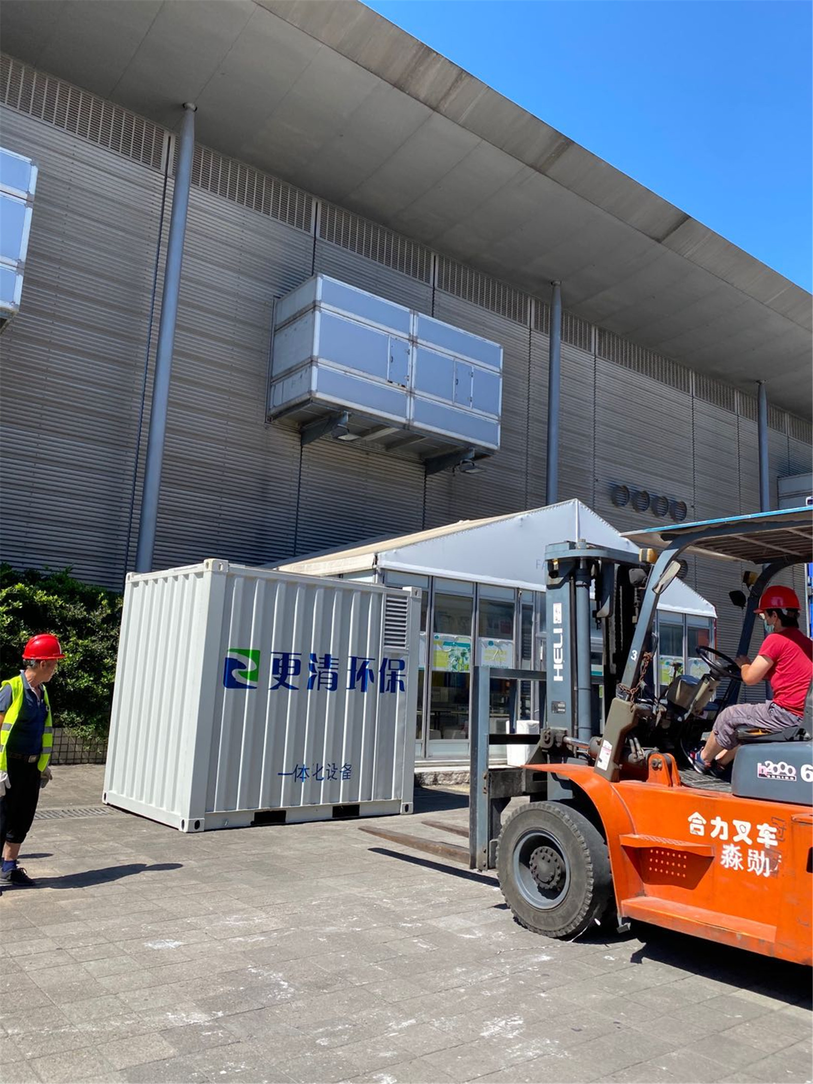 2020年8月12日布场当天,今年环博会来的不仅仅是访客,我们也自带了一个小伙伴给大家认识,一体化环保设备5吨的集装箱式污水处理设备,就是以下图片上的那只啦~