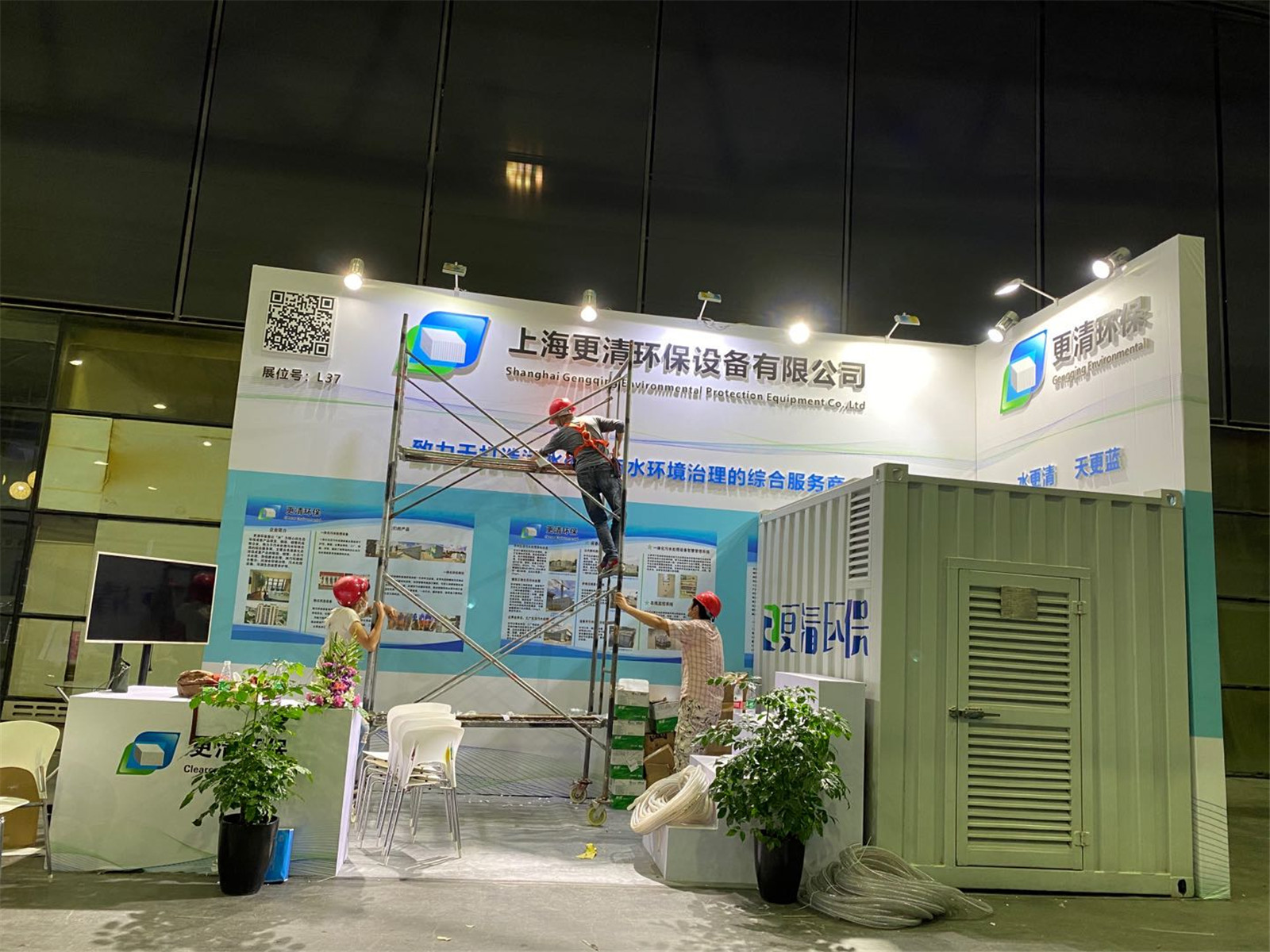 设备进场过后,还有场地的搭建~上海环博会每年1300多家参展公司百花齐放,各自搭建出自己的公司色彩,结合公司的产品,做成自己想要的效果。
